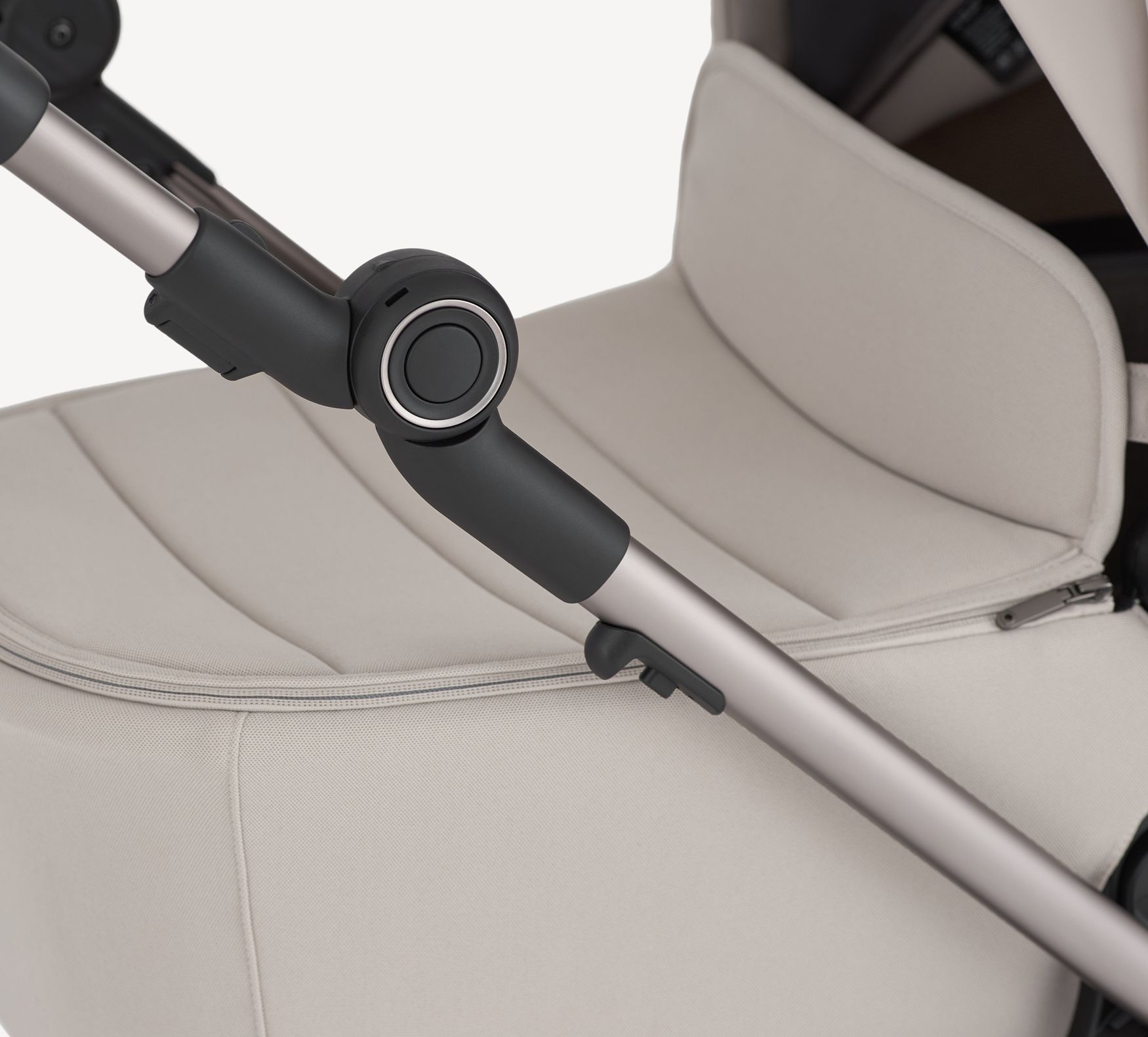 Los padres podrán estrechar o ensanchar el chasis sin esfuerzo para adaptarlo a sus necesidades en tan solo 3 minutos sin herramientas, ajustando el chasis con pocos clics.