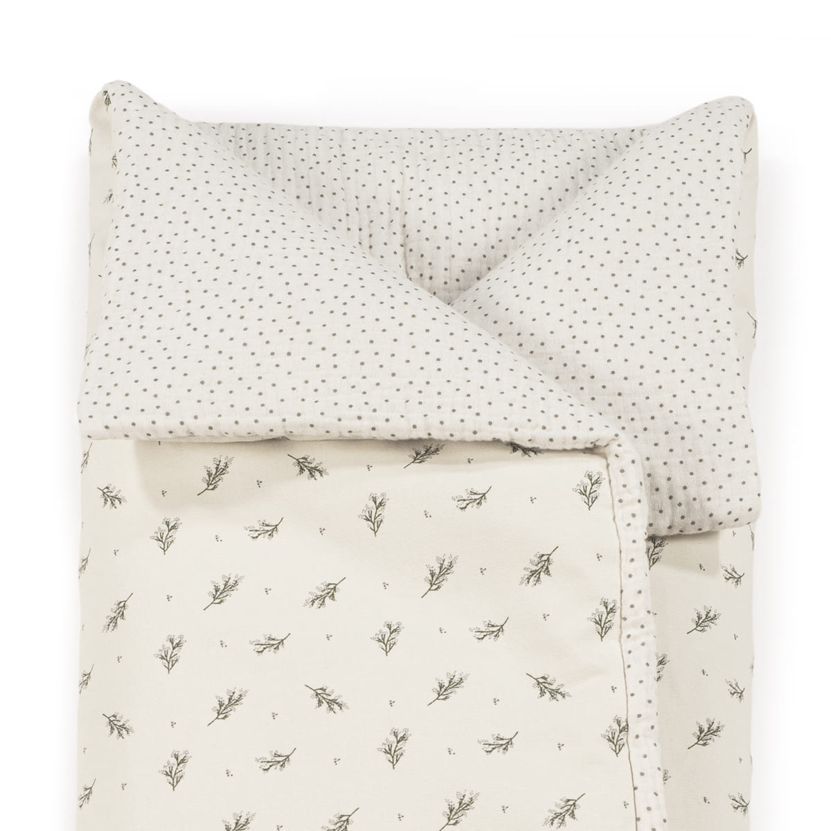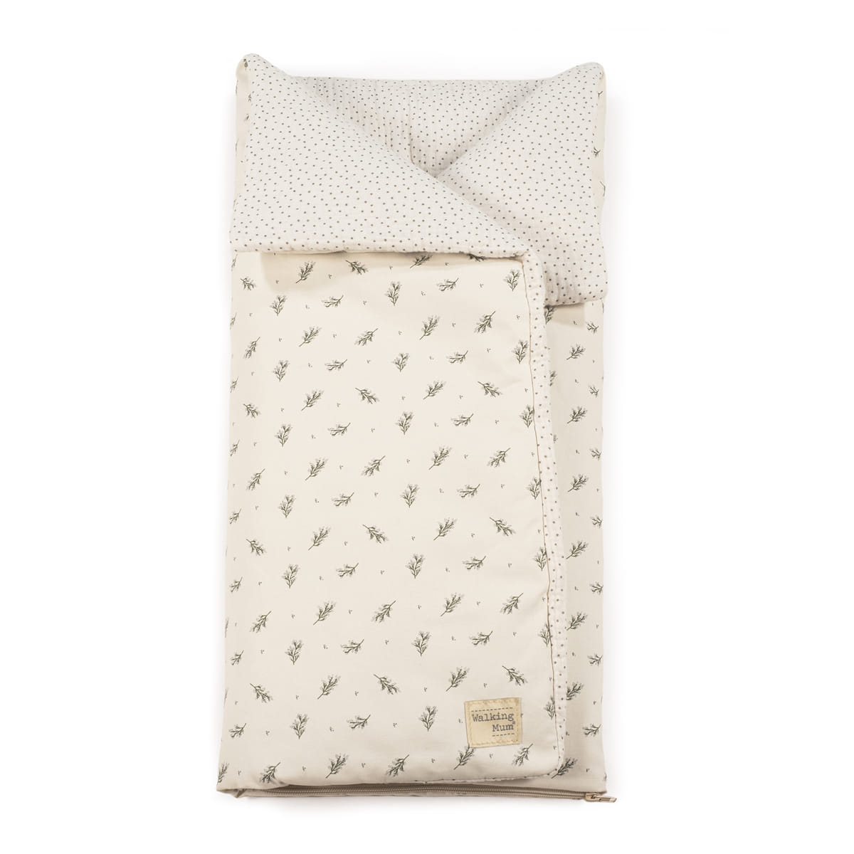 Saco arrullo o saco manta Mimosa Verde. Está fabricado con una suave muselina 100% algodón. Ideal para los primeros dias del bebé. Es perfecto para los primeros paseos en el capazo. Se convierte en una manta para la cuna. Practico cierre tipo sobre con lazos y cierre con cremallera en la parte inferior en los pies para que el bebé esté abrigado. Gran calidad y mucho estilo. Fabricado en materiales resistentes y de fácil limpieza a mano o a máquina a 30 °C. Walking Mum protege a tu bebé utilizando los mejores tejidos, libres de colorantes azoicos y sustancias nocivas para la salud. Nuestra colección Walking Mum está diseñada con un particular sello de estilo urbano y moderno que no pasa desapercibido, para vestir diferente los paseos con tu bebé. Los accesorios de esta línea son más sport y prácticos, especialmente pensados en mamás y papás modernos que aprecian los diseños más actuales y en tendencia sin dejar de lado la calidad y la funcionalidad de los complementos que hacen más cómodos todos los paseos con sus bebés. Especificaciones: Materiales: 100% algodón. Medidas cerrado 38×73 cm y abierto 97×73 cm.
