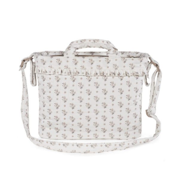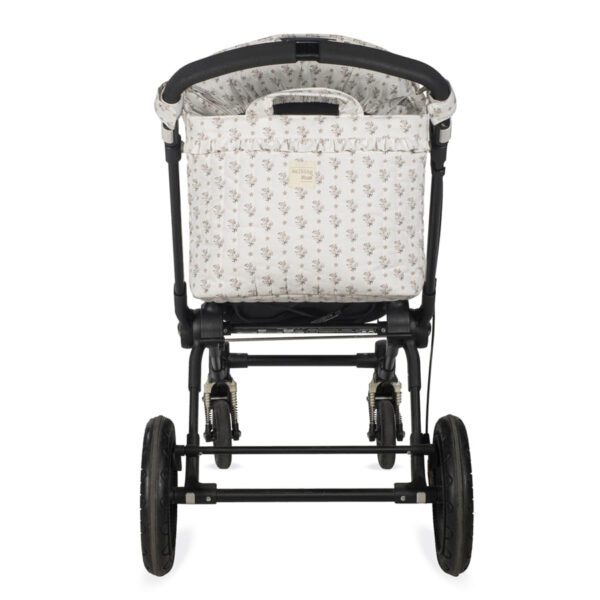 Bolso cambiador Botton con estampado floral para silla de paseo que incluye cambiador para bebe. Bolsa canastilla muy ligera, resistente y de gran capacidad para llevar todo lo necesario para el paseo del bebe. Tiene multiples bolsillos para poder tener todo ordenado. En el interior incopora un bolsillo plastificado para la ropa húmeda, un bolsillo térmico para biberones y dos bolsillos para lo que necesites tener más a mano. La bolsa tiene un sistema universal de fijación, con 2 asas cortas ajustables que facilita la colocación en cualquier modelo de silla de paseo. También incorpora una asa larga para poder colgarla en el hombro y asas cortas para cogerla con la mano. Gran calidad y mucho estilo. Fabricada en algodón 100% con un tratamiento waterproof, de fácil limpieza a mano o a máquina a 30 °C. Walking Mum protege a tu bebé utilizando los mejores tejidos, libres de colorantes azoicos y sustancias nocivas para la salud. Nuestra colección Walking Mum está diseñada con un particular sello de estilo urbano y moderno que no pasa desapercibido, para vestir diferente los paseos con tu bebé. Las bolsas de maternidad de esta línea son más sport y prácticas, especialmente pensadas en mamás y papás modernos que aprecian los diseños más actuales y en tendencia sin dejar de lado la calidad y la funcionalidad de los accesorios que complementan y hacen más cómodos todos los paseos con sus bebés. Especificaciones: Materiales: 100% algodón con tratamiento waterpfoof. Medidas: 44x29x12 cm.