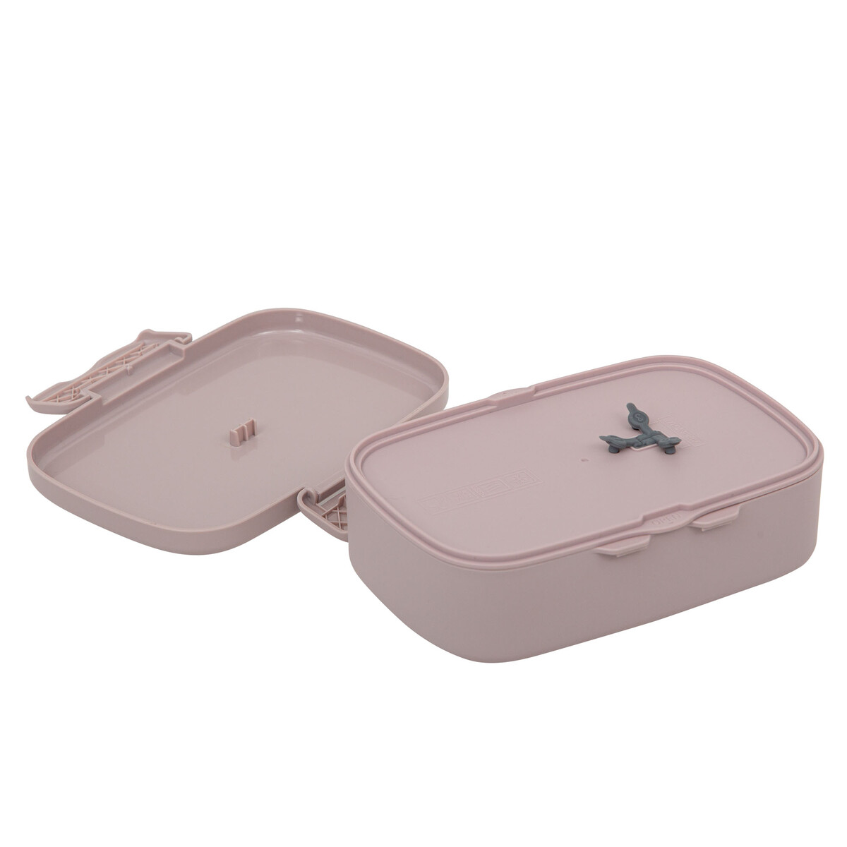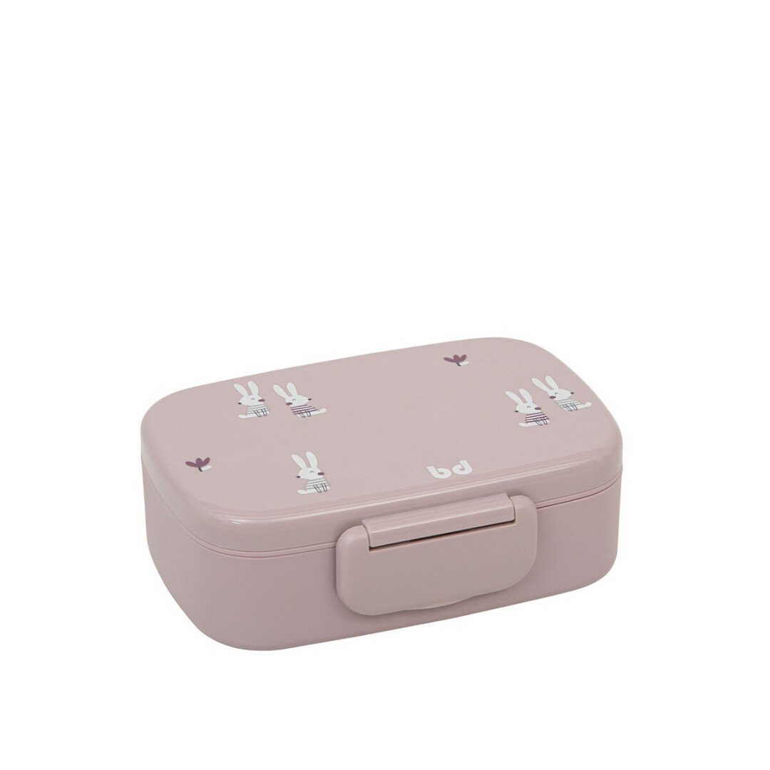 La caja de almuerzo de la colección Rabbits de Bimbidreams está fabricada en polipropileno (PP), un material plástico resistente y ligero que asegura un uso seguro y duradero para transportar alimentos infantiles. Este contenedor está diseñado para proteger los alimentos del bebé, manteniéndolos frescos y facilitando su transporte en mochilas o bolsos.