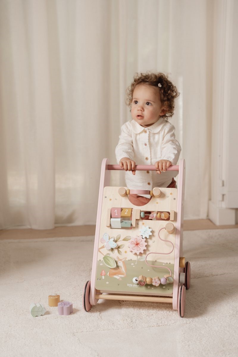 ¡Camina, juega y aprende! Te divertirás mucho explorando todas las actividades de este andador para bebés Fairy Garden. ¡Gira los engranajes para que la libélula gire alrededor de la flor! ¡Haz girar el espejo! Y aprende a contar con el caracol y el erizo. Este andador de actividades de madera ofrece varias actividades desafiantes que apoyan el desarrollo de las habilidades motoras de tu hijo. Desafíe a su pequeño con las muchas actividades de este andador bellamente decorado. Hay 8 actividades para descubrir y dominar. Con su diseño resistente, el andador es adecuado para niños de 12 meses en adelante que estén listos para dar sus primeros pasos. Prepárate para recibir estímulos entusiastas mientras tu pequeño se desplaza por la casa con este andador. Las ruedas de goma no dejarán marcas en el piso y son seguras para usar en interiores. Requiere ensamblaje por parte de un adulto.