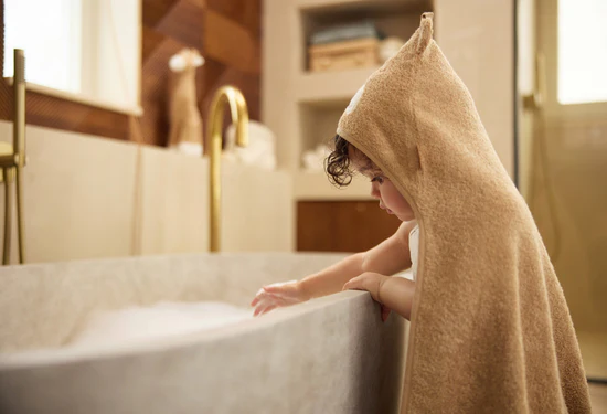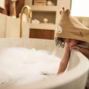 Con un estilo impecable en color Piedra Lunar, podrás abrigar a tu bebé y mantenerlo abrigado en cuanto lo saques del agua.