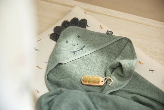 La suave tela de rizo es delicada con la piel del bebé y absorbe la humedad, facilitando su secado.