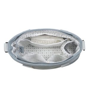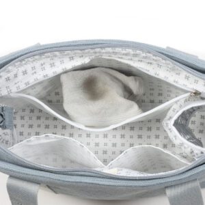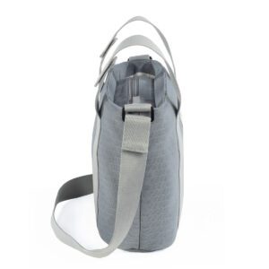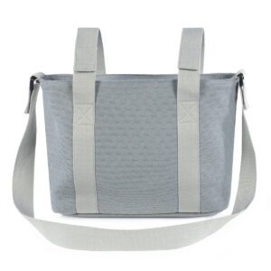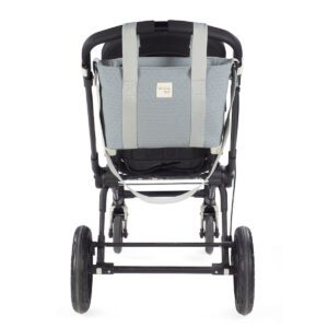 Incorpora asas cortas con las que puedes fijarla a cualquier modelo de silla de paseo y asa larga para que te la puedas colgar en el hombro.