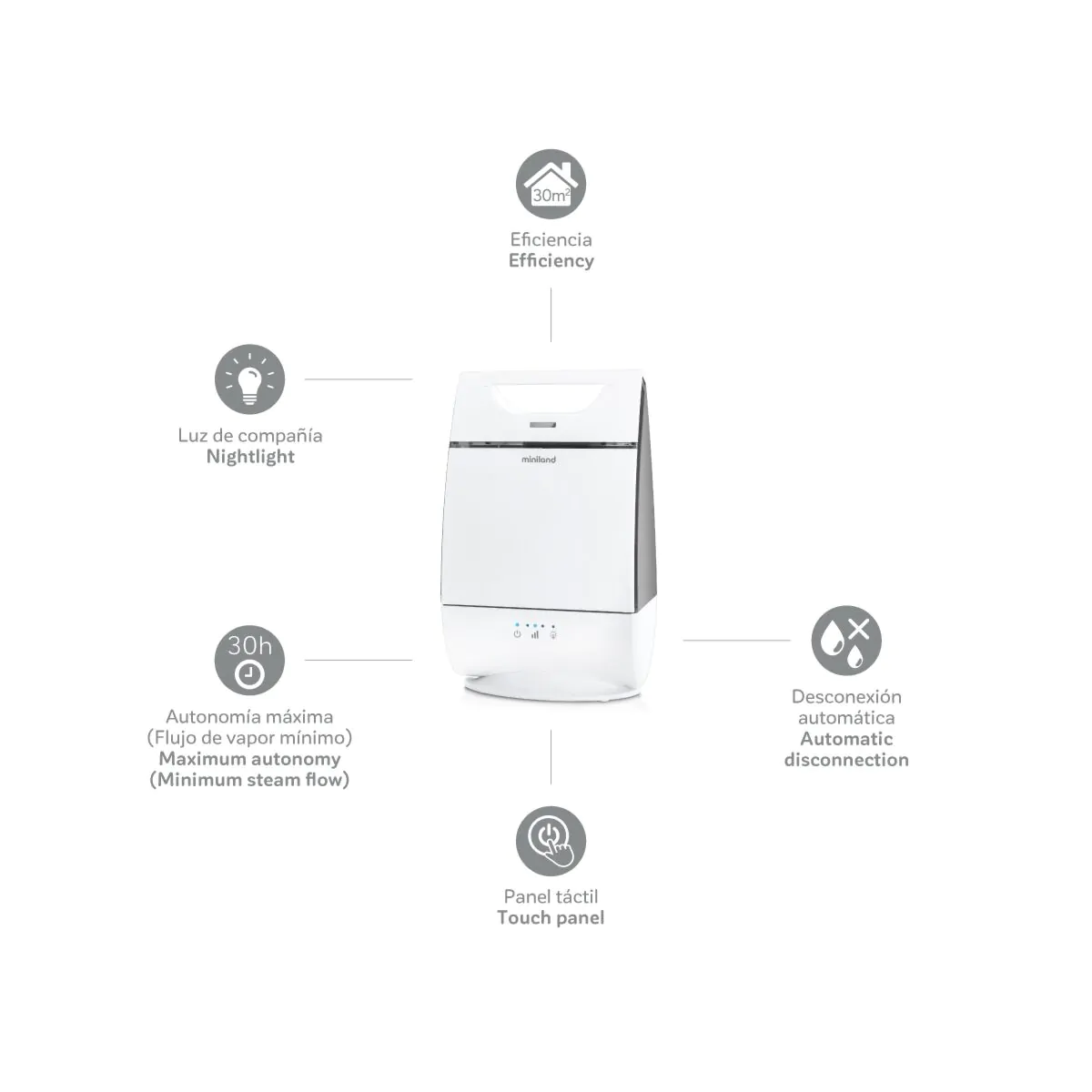 Este humidificador de vapor frío ayuda a equilibrar el ambiente seco y proporciona el nivel de humedad adecuado en cada estancia del hogar. El vapor se esparce uniformemente y no varía la temperatura de la estancia.