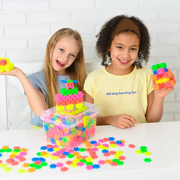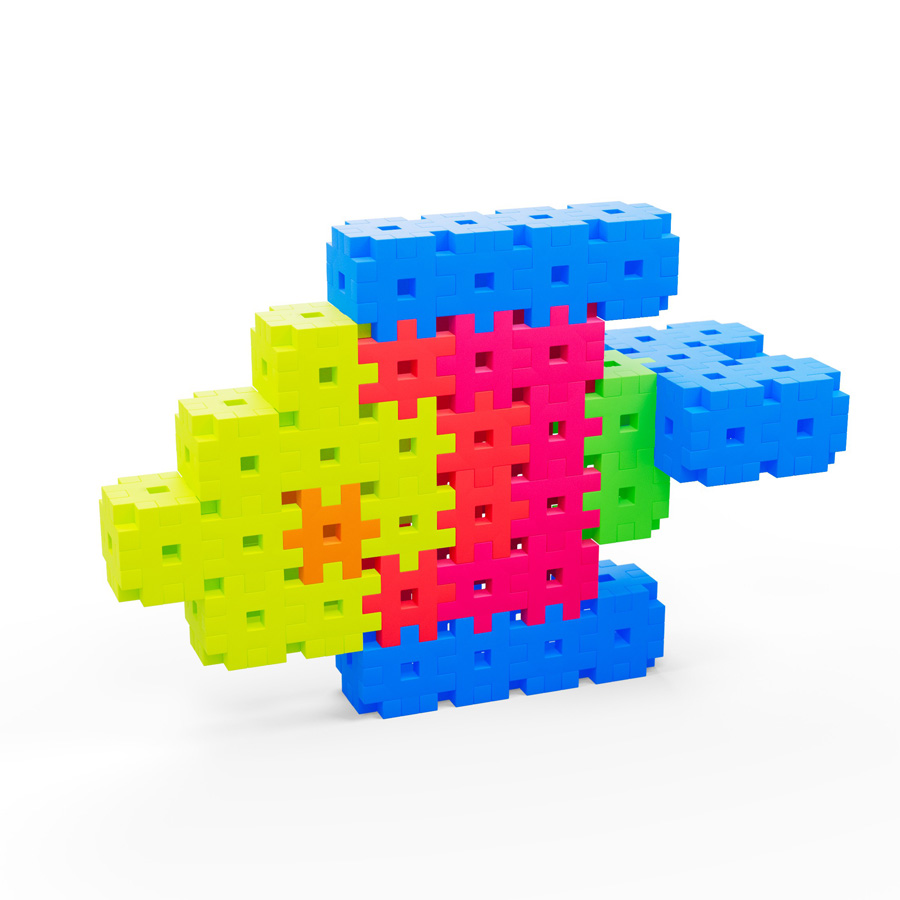 250 piezas en colores neón vienen en una práctica maleta con una práctica asa. Esta mini maleta es una solución perfecta para los viajes largos en coche o en avión y, una vez terminado el juego, la limpieza en un hotel, una tienda de campaña o un camping es muy fácil.