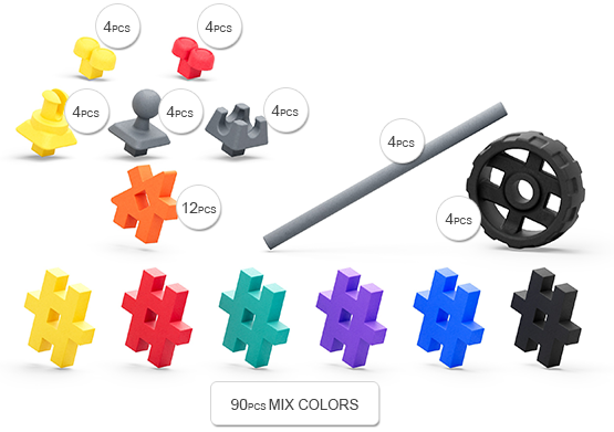 - Incluye: Ruedas de diferentes tamaños. Ejes y conectores técnicos. Piezas básicas de construcción en colores variados. Elementos decorativos y complementos. Cuaderno ilustrado con ejemplos de modelos para reproducir o utilizar como inspiración (vehículos, helicópteros, robots, etc.).