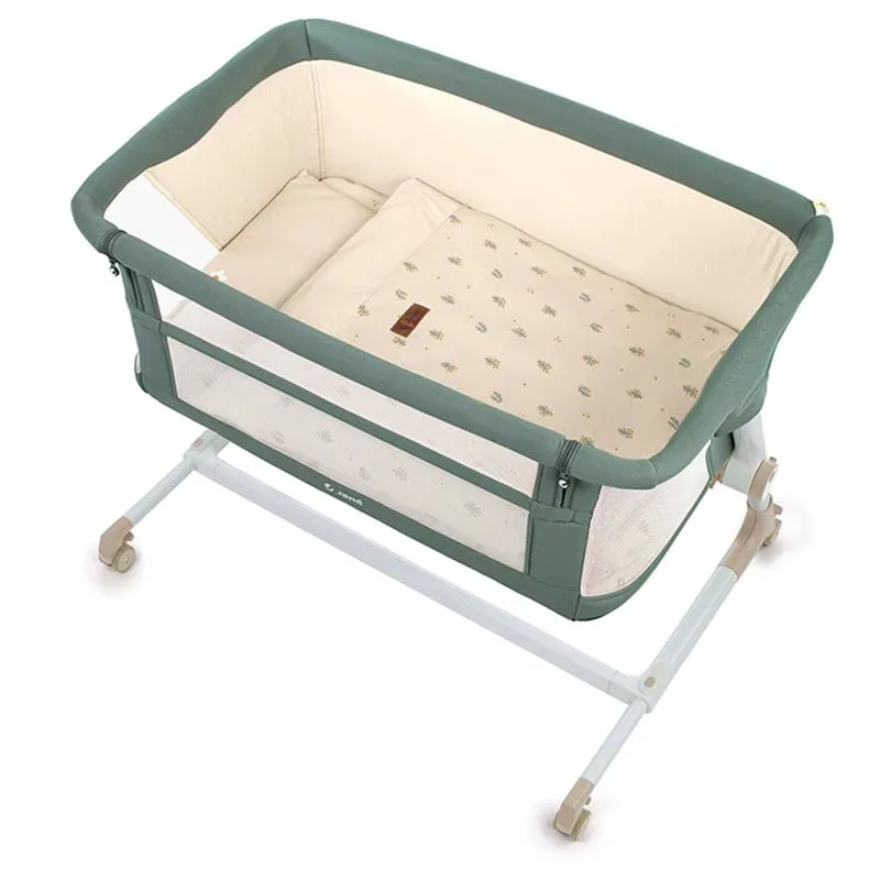 Minicuna Jane Baby side, es la cuna más cómoda y sencilla para compartir la cama con tu bebé. Sus patas inferiores telescópicas y sus 6 posiciones de altura hacen que sea fácil de adaptar a todo tipo de camas.