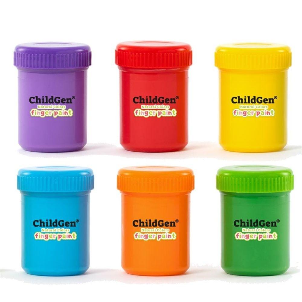 uego de 6 botes de pintura de dedos orgánica lavable ChildGen.