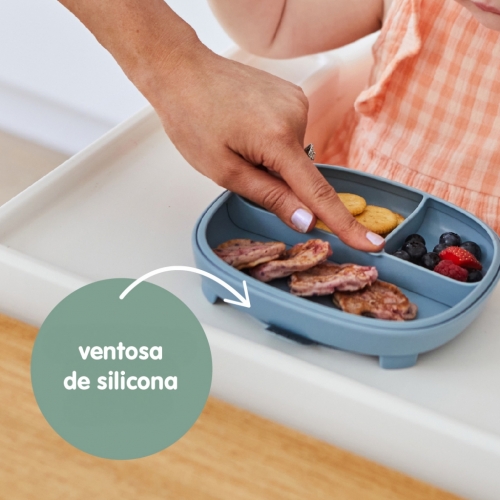 El compañero de mesa flexible de tu hijo, desde los primeros sabores hasta que coma de manera independiente. Su base de silicona resistente con ventosa se adhiere firmemente a superficies lisas para comer sin ensuciar. Es fácil de fijar y soltar. El divisor de compartimentos extraíble se adapta a los comensales más exigentes, mientras que el reborde y los lados curvos fomentan la autoalimentación sin ensuciar tanto. Convertible en un plato estándar para niños mayores, es ideal tanto para comidas frías como calientes. Fabricado con PP y silicona duraderos, es apto para microondas y lavavajillas (solo en la rejilla superior) para una limpieza fácil, y libre de sustancias nocivas como BPA, PVC y ftalatos para tu tranquilidad.