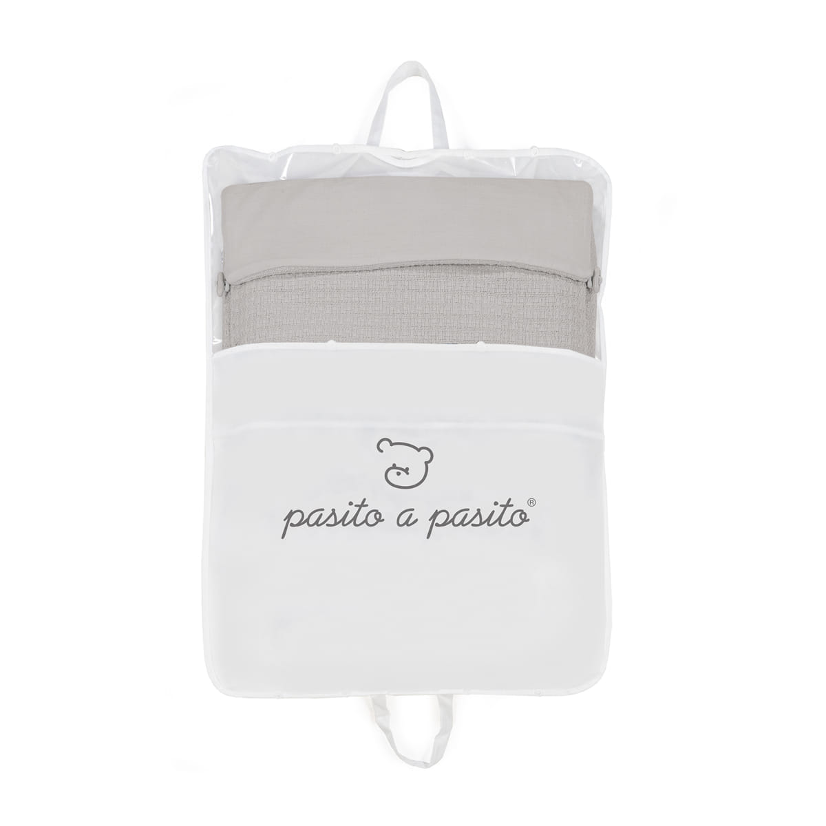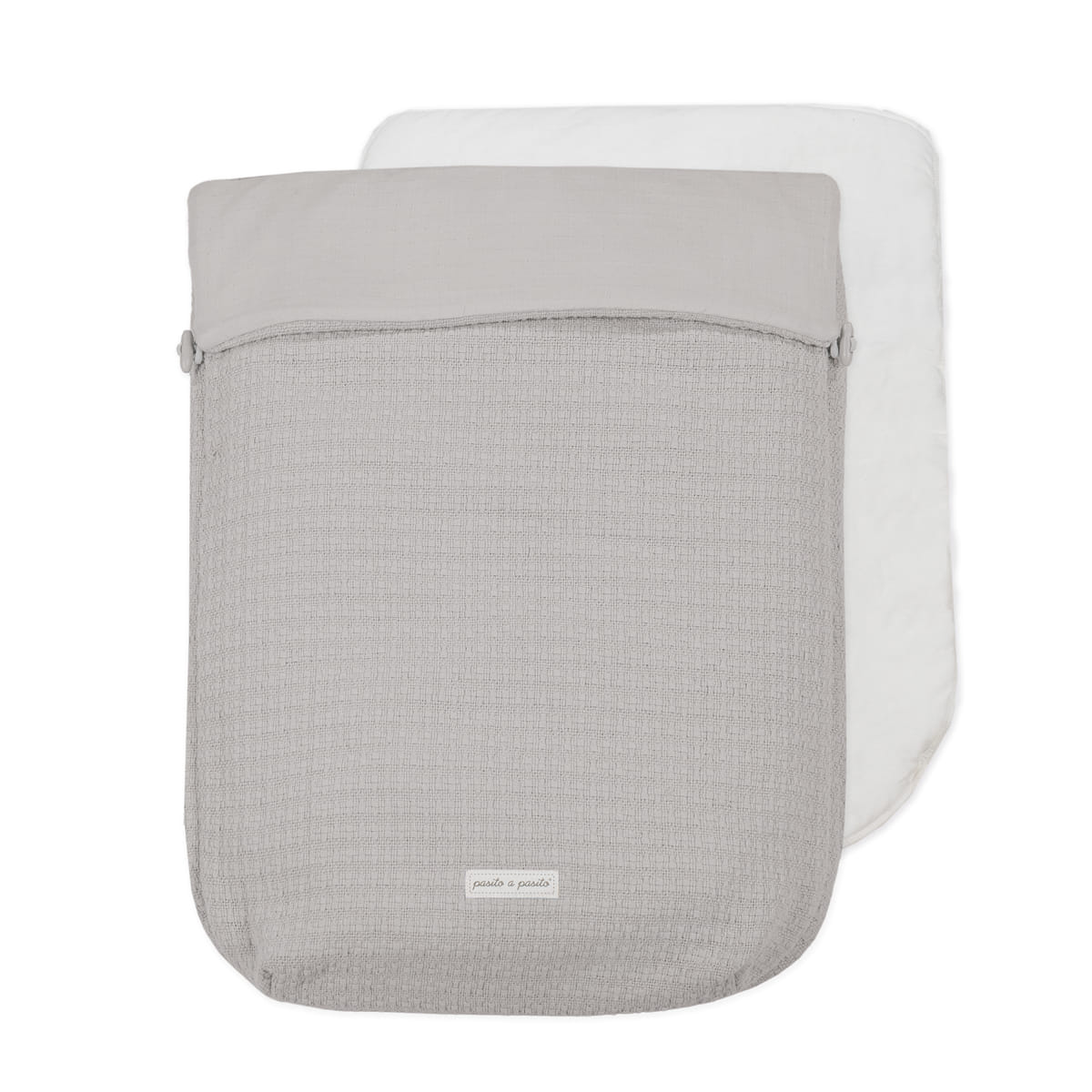 Funda Icon Smoke de Pasito a pasito en tejido leno y bambula muy suave ideal para cubrir la silla de paseo provista de saco. Está diseñado en el respaldar con una capa de tejido en material transpirable que aísla la humedad y evita la sudoración excesiva del bebe haciendo el paseo más confortable. Relleno de fibra hueca extraíble. Reposapiés en poliéster para facilitar la limpieza. Dispone de varias aperturas (ojales) y ajustes para adaptarla a la mayoría de la sillitas de paseo, convirtiendo el paseo de tu bebé seguro y confortable. Es un diseño bonito, simple y cómodo que crea un nido para tu bebé manteniéndolo arropado y protegido en días de brisa. El saco se adapta sin problemas a cualquier coche para darle la comodidad que necesita. Acabados de calidad. Todas nuestras fundas están fabricadas conforme a las más exigentes normativas europeas, con materiales de gran calidad, libres de colorantes azoicos, ftalatos y sustancias nocivas para la salud. Tela de fácil limpieza, se recomienda lavar a máquina a 30º. Los productos para bebé de Pasito a Pasito cuentan con un diseño muy diferente a todas las demás. Sus colecciones se caracterizan por el trabajo al detallada, pensadas siempre desde un punto de vista práctico. Utilizan materiales de primera calidad para remarcar la elegancia y la armonía en cada una de sus piezas. Nuestros modelos son exclusivos y de estilo inconfundible, pensados en las madres actuales que gozan de buen gusto y que aprecian los detalles tanto como nosotros. Materiales: 100% algodón. Color: Gris. Tamaño universal.