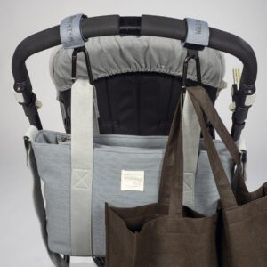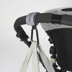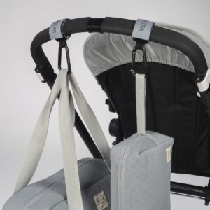 Set de 2 ganchos para cochecito Eco Mum Cloud. Gancho de metal. Muy facil de colocar gracias a sus tiras con velcro. Perfecto para colgar la bolsa de canastilla o cualquier bolsa que necesites llevar en el cochecito. Soporta hasta 5 kgs de peso. Universal.