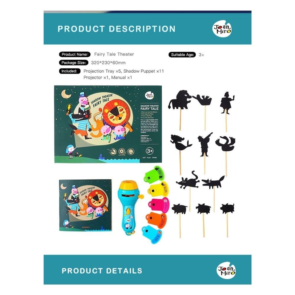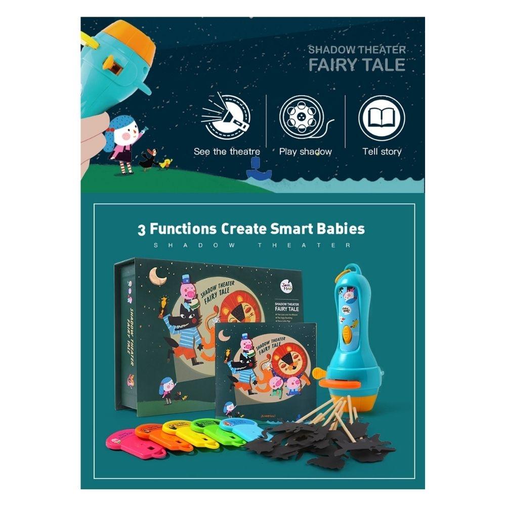 • Características: Set de cuentos con proyección y teatro de sombras; fomenta la imaginación, el lenguaje, la comunicación y el vínculo familiar; ideal para rutinas de calma antes de dormir y juego simbólico.