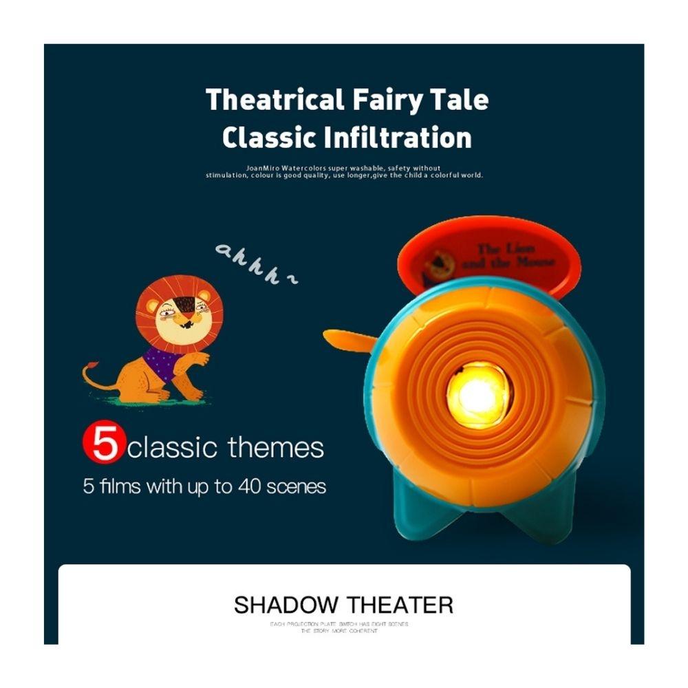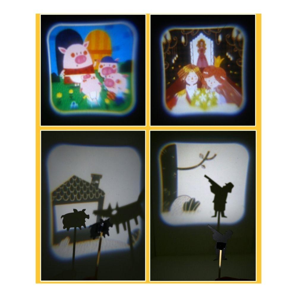 • Incluye: Proyector con linterna+4 discos de cuentos+1 disco de sombras+Libro de cuentos con imágenes+11 figuras de sombras+Estuche ilustrado convertible en teatro. Medidas: 19 x 26.5 x 6.5 cm.