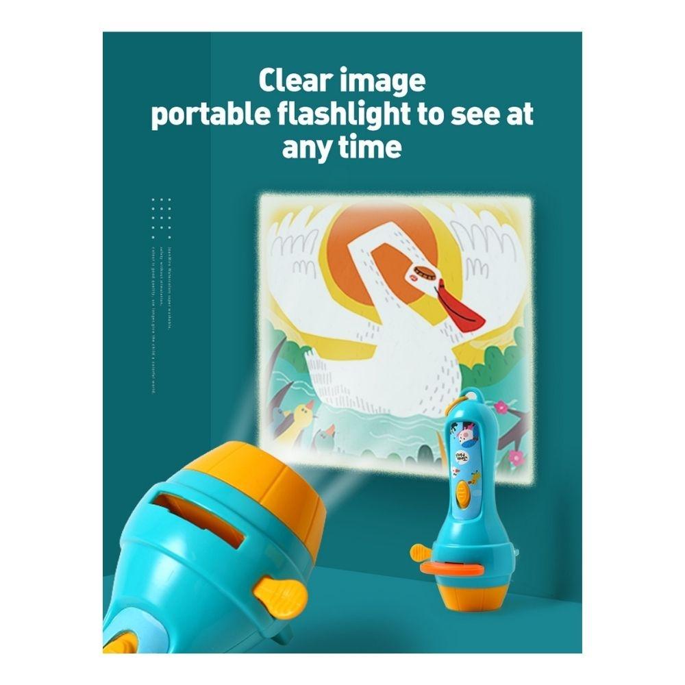 El proyector con linterna permite reproducir distintas historias al insertar los discos de cuentos, proyectando las imágenes sobre la pared o sobre el teatro incluido. Las escenas cobran vida con una luz suave que envuelve el espacio y estimula la imaginación, favoreciendo un ambiente de calma y atención compartida.