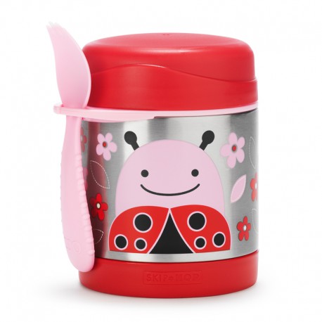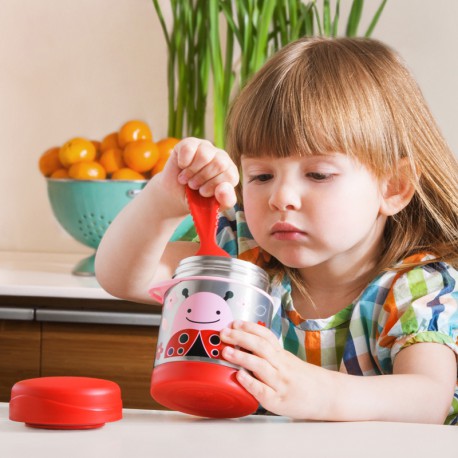 Este colorido recipiente de acero inoxidable mantiene calientes o frías las porciones infantiles.