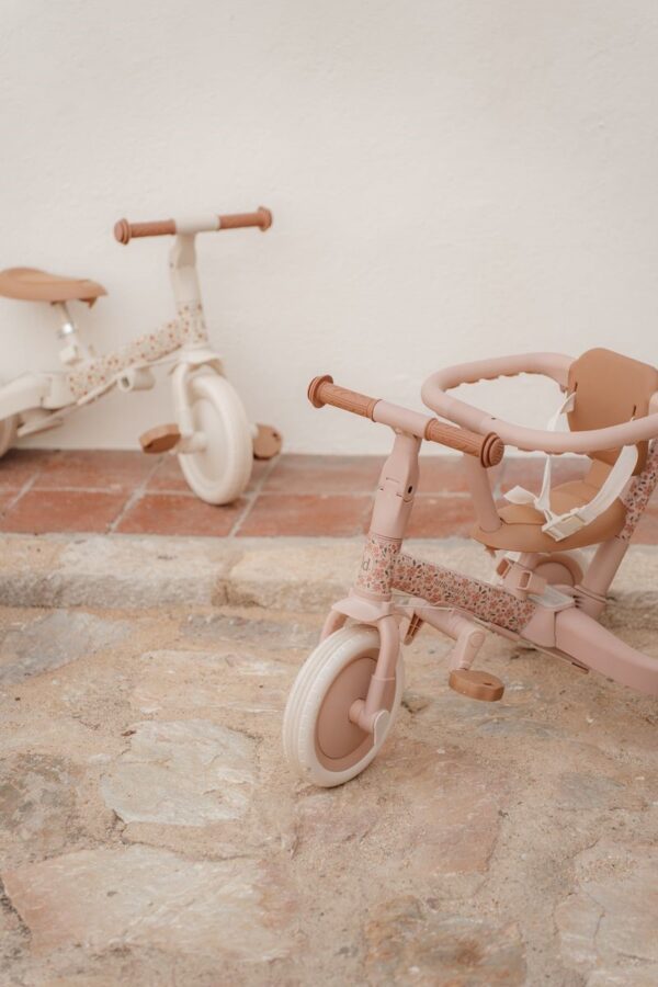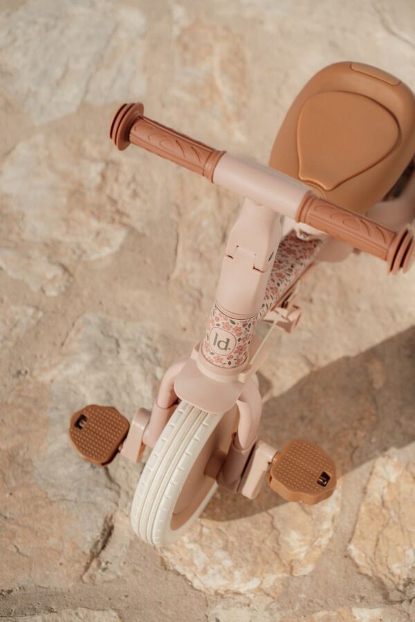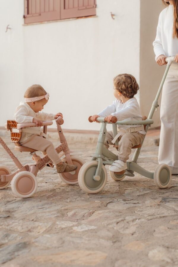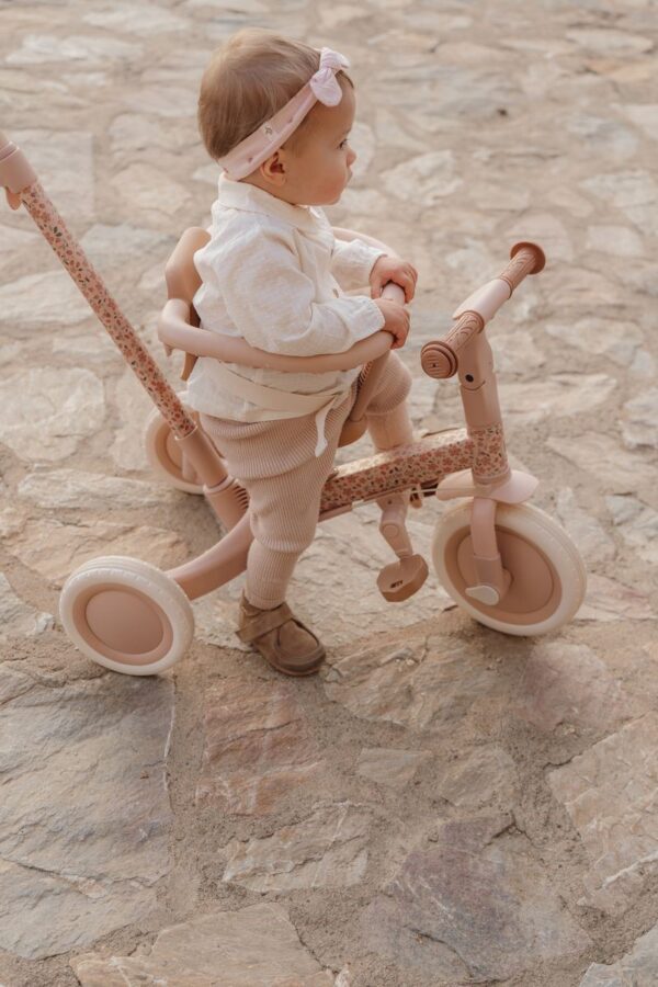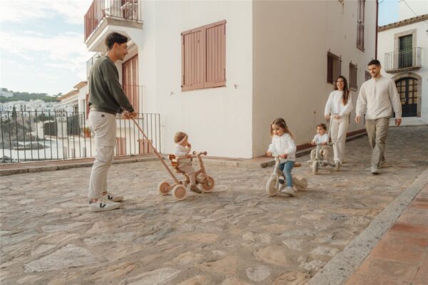 La bicicleta de equilibrio es una preparación ideal para descubrir el ciclismo. Cuando el pequeño aún es demasiado pequeño para montar en bicicleta o correr, mamá o papá pueden empujarlo hacia adelante usando la barra de empuje. El niño está completamente seguro en el cinturón de seguridad y el anillo de seguridad. La barra de empuje y el anillo de seguridad se pueden quitar fácilmente. Este modelo es fácil de convertir de un triciclo a una bicicleta de equilibrio al plegar las dos ruedas traseras hacia adentro. Esto hace que la transición a una bicicleta con pedales sea más fácil. Los pedales son fáciles de montar y se almacenan cómodamente en el marco debajo del sillín. El sillín y el manillar son ajustables a las necesidades del niño. Esta bicicleta de equilibrio se puede utilizar para ejercitar las habilidades de movimiento coordinado de su hijo, y también para aprender a mantener el equilibrio.Peso: 4,5 kg