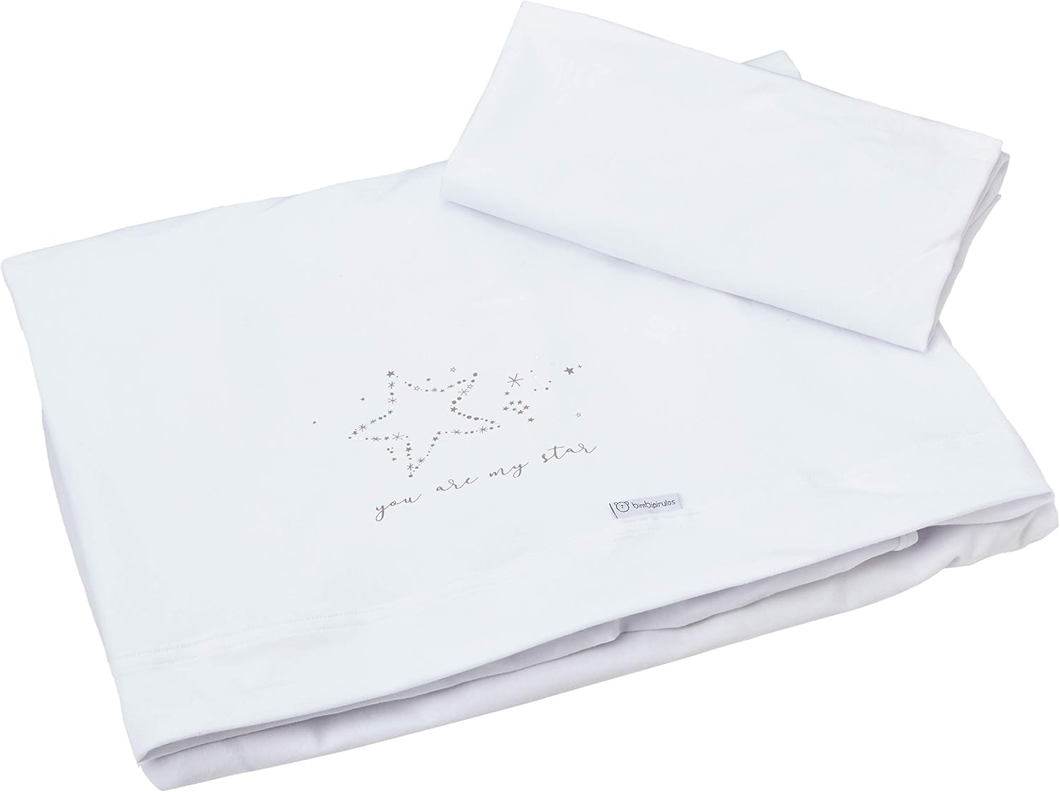 Este conjunto de sábanas de la colección basicos de Bimbidreams está pensado para padres que priorizan materiales naturales y un diseño delicado para la habitación del bebé.