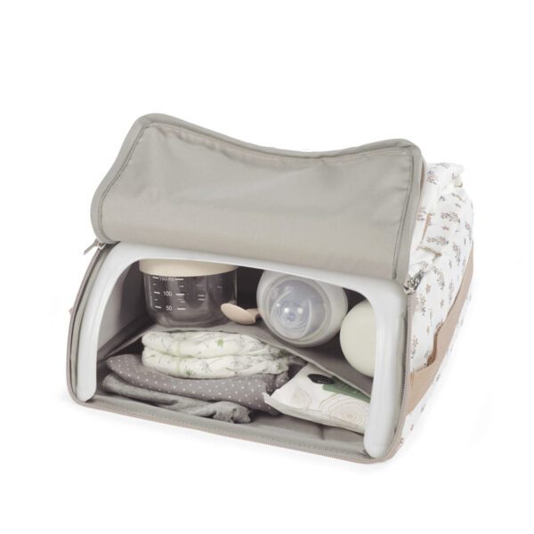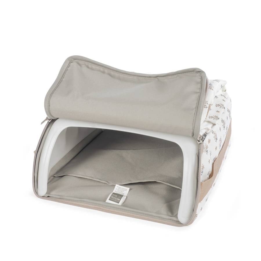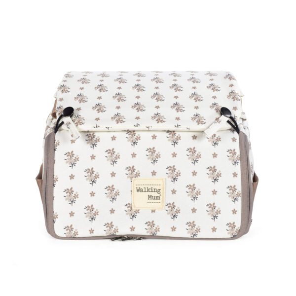 Esta trona portátil para bebés Botton flores es la solución perfecta para padres en movimiento que desean ofrecer a sus pequeños un asiento seguro y cómodo en cualquier lugar. Con un diseño moderno de cuadros en tonos neutros, esta trona que combina funcionalidad y estilo es la solución perfecta para alimentar a tu bebé en cualquier lugar. Su diseño plegable permite llevarla fácilmente a cualquier lugar, ya sea a un restaurante, de viaje o a la casa de los abuelos. Cuenta con una correa para llevarla cómodamente al hombro. Incluye un compartimento de almacenamiento en la base, perfecto para guardar pañales, toallitas u otros accesorios esenciales del bebé. Se adapta a la mayoría de las sillas de adulto estándar, ofreciendo versatilidad y comodidad en diferentes entornos. Incluye correas ajustables para fijarla de manera rápida y segura a al respaldo y al asiento. Las medidas mínimas de las sillas de adulto para poder fijar la trona son: altura mínima de respaldo 48.5 cm, anchura mínima del asiento 36 cm y profundidad mínima del asiento 34 cm. Dispone de arnés ajustables para sujetar bien al bebé proporcionando máxima seguridad durante las comidas. Fabricada con materiales de alta calidad, duraderos y resistentes, ideal para el uso diario. Es muy fácil de limpiar ya que es completamente desenfundable. Esta silla portátil está destinada para bebes que puedan mantenerse sentados por si solos. Desde los 6 meses hasta máximo 3 años o un peso máximo de 15 kgs. Cumple con la normativa EN 16120:2012+A2:2016. Asiento elevador. Walking Mum protege a tu bebé utilizando los mejores tejidos, libres de colorantes azoicos y sustancias nocivas para la salud. Especificaciones: Materiales: 100% Poliéster. Medidas cerrada: 29x36x31 cm.