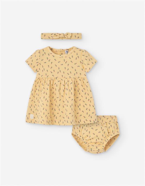 Conjunto Vestido + ranita + Cinta para el pelo Estampada Losan Talla 6-9 Meses